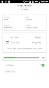 This app will help you keep track of the dates you are most likely to pass an upcoming drug test.