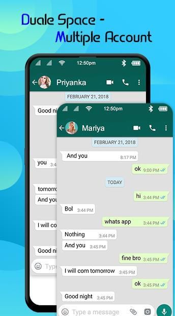 Download and enjoy our service, 20,000+ users downloaded Dual Space Multiple Account latest version on 9Apps for free every week! It is an excellent app and the fact it is! This hot app was released on 2018-10-06. Certainly you will love it after play.