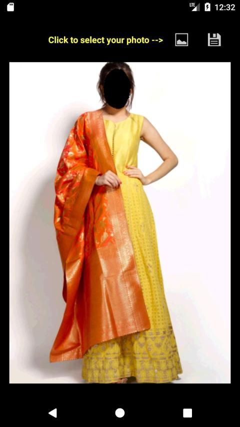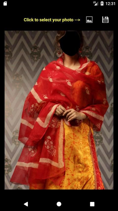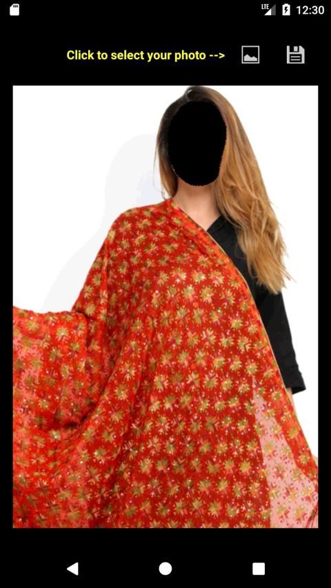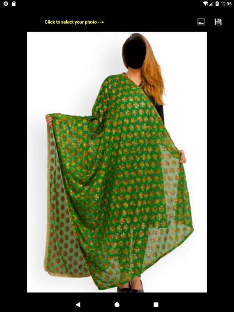 Select a Dupatta, select your photo from gallery, adjust your face and save. Done!