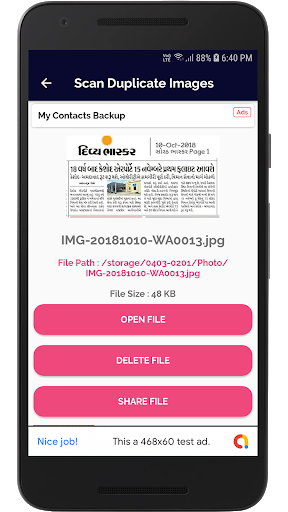 एक बार एप्लिकेशन डुप्लिकेट फ़ाइल ढूंढने के बाद आपके पास कौन सी फ़ाइल चुनने का विकल्प चुनने का विकल्प होगा स्वच्छ और उसके बाद केवल एक स्पर्श में आप बेकार मेमोरी स्टोरेज के सभी भारों से अपने फोन को मुक्त और अनुकूलित कर सकते हैं।