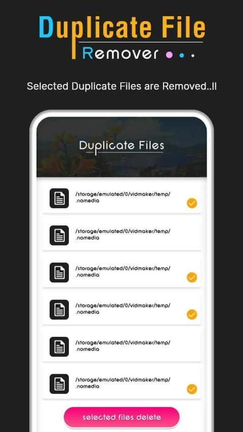 Free up storage space has never been this wasy using the all new Duplicate Files Remover : Duplicate Photo & Video Remover app. Just select the type of file you are looking to scan and the app will show you all the duplicate files that you can delete from the app itself.