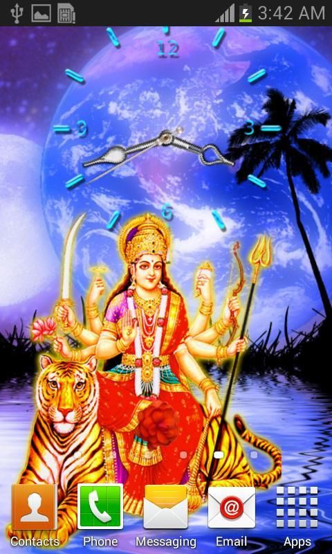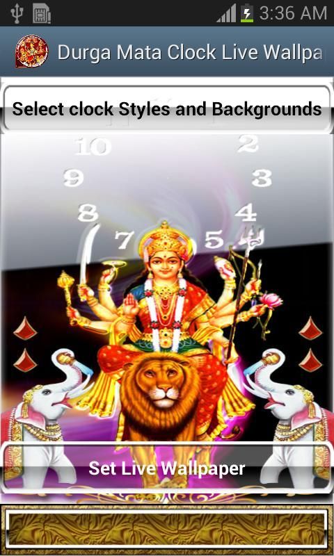 Durga Mata Clock Live Wallpaper fro your mobile home. This clock theme especially for Durga Ashtami Festival.