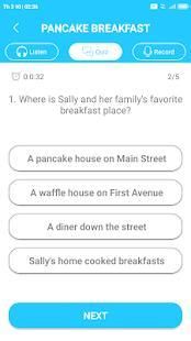 - Practice with virtual partner, app will record your voice and you can listen to saved records later.