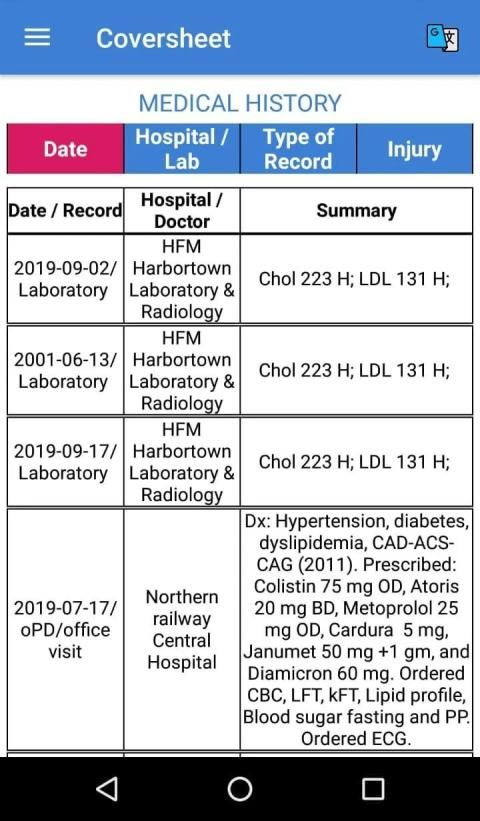 The cover sheets we provide are prepared by a team of experienced doctors and paramedical professionals. The records are carefully reduced into facts; the dates are accurately recorded; the figures, names and reports are appropriately captured. The key events and diagnosis is summarized carefully to provide a concise medical summary.
