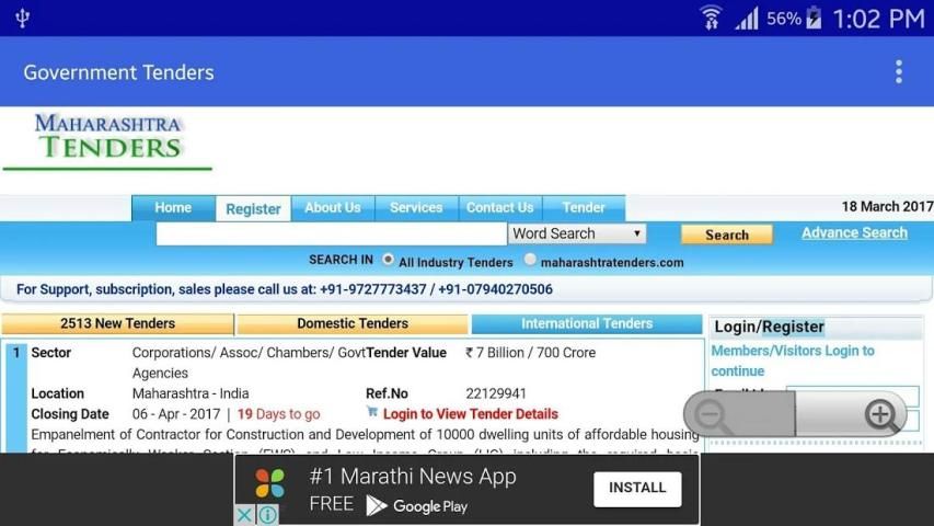 "ई टेंडर महाराष्ट्र" ऑनलाइन खोज महाराष्ट्र सरकार और केन्द्र सरकार लाइव निविदाएं के लिए एक अनूठा एंड्रॉयड ऐप।