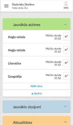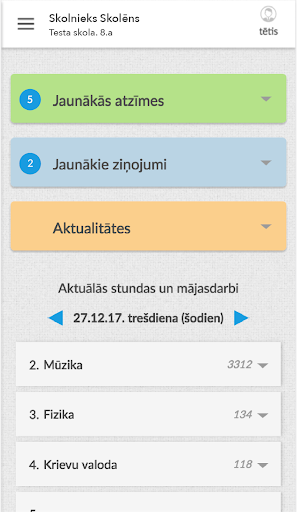एप्लिकेशन https://www.e-klase.lv की तरह पूर्ण ई-क्लास कार्यक्षमता प्रदान करता है।