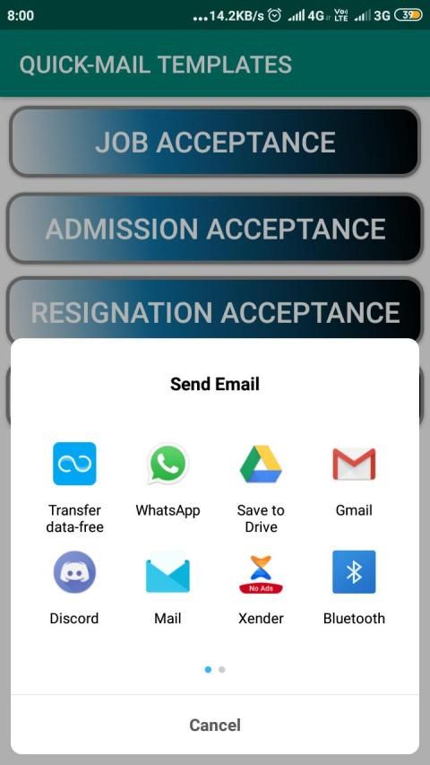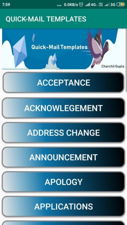 इसमें विभिन्न परिदृश्यों के तहत पूर्व-लिखित ईमेल शामिल हैं जो आपको आसानी से ईमेल लिखने में मदद करता है।