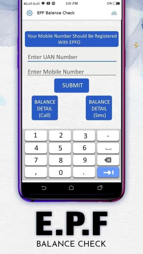 - Know EPF Balance Through SMS : App will send SMS to EPFO SMS service and get SMS with your EPFO details.