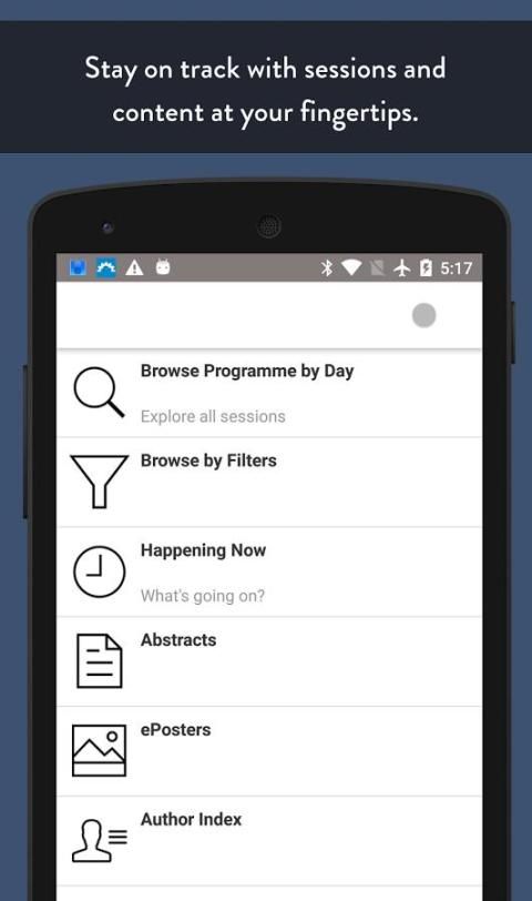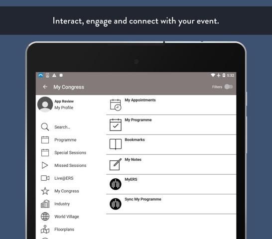 आधिकारिक कांग्रेस एप्लिकेशन डाउनलोड करने के लिए नि: शुल्क है और प्रतिनिधियों दिन, संकाय, विषय, लक्षित दर्शकों और ट्रैक से कार्यक्रम खोज करने के लिए अनुमति देता है। यह सार, ePosters, और दर्ज की गई प्रस्तुतियों सत्र के बाद कुछ घंटों के जगह ले ली है की वेबकास्ट होते हैं। वहाँ भी उद्योग की घटनाओं, प्रदर्शनी की योजना है, एक इंटरेक्टिव मानचित्र और एक व्यक्तिगत एजेंडे से भरा लिस्टिंग रहे हैं। कांग्रेस के प्रतिनिधियों ने भी अपने प्रोफाइल को अनुकूलित करने के लिए, सक्रिय भागीदारी सूचियों में प्रदर्शित करने के प्रतिनिधियों को सक्रिय करने के अन्य दृश्य उन से संपर्क करें और इलेक्ट्रॉनिक व्यवसाय कार्ड का आदान-प्रदान करने का विकल्प है।