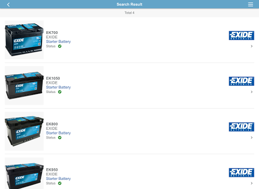 Select the correct battery for your vehicle with the all new fast and easy-to-use Exide Technologies Battery Finder app for Android.