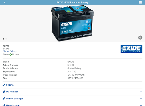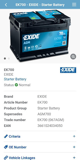 Thanks to the various search features, battery selection is made easy by simply entering any of the following vehicle information: Plate/registration number, vehicle make and model or the original battery part number. This includes EXIDE part numbers and some other well-known battery brands.