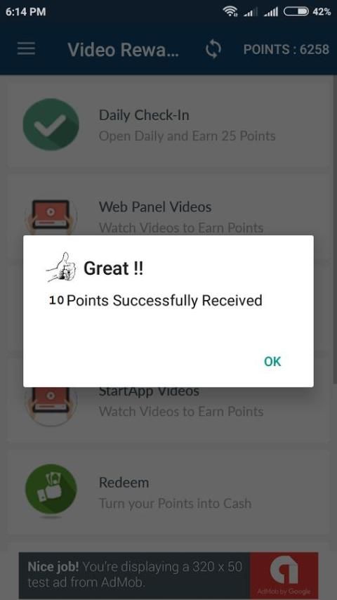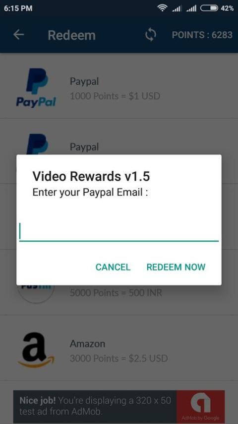 उपयोगकर्ता देखा प्रत्येक वीडियो के लिए अंक अर्जित कर सकते और नकदी या उपहार कार्ड के लिए अपने अंक भुना सकते हैं। कमाएँ नि: शुल्क Paytm और पेपैल नकद आवेदन सरल कार्य-वीडियो देखने का उपयोग कर मुक्त Paytm नकद प्रदान करना है।
