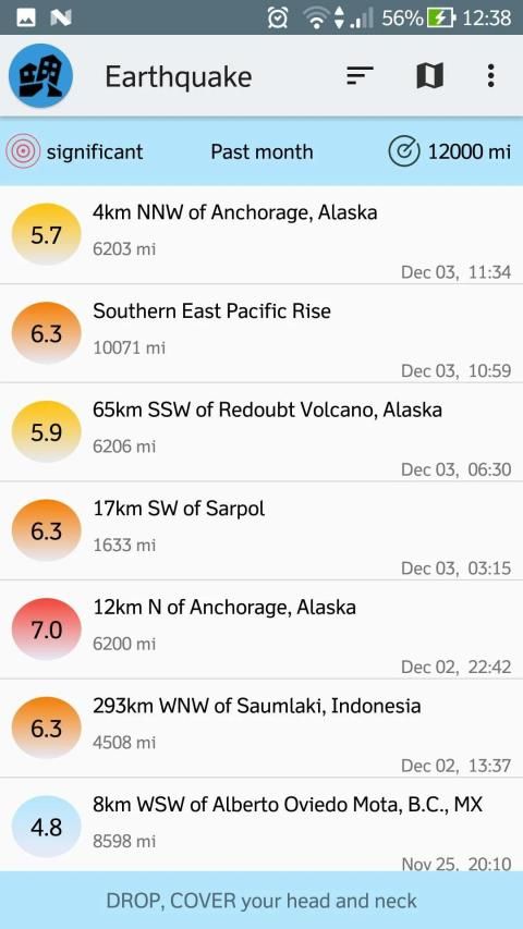 - notification shows highest and nearest quake magnitude in a defined region and time