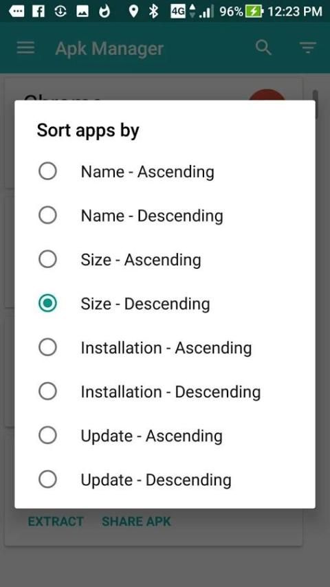 * Sore according to install time, update time, apk size, name (ascending or descending)
