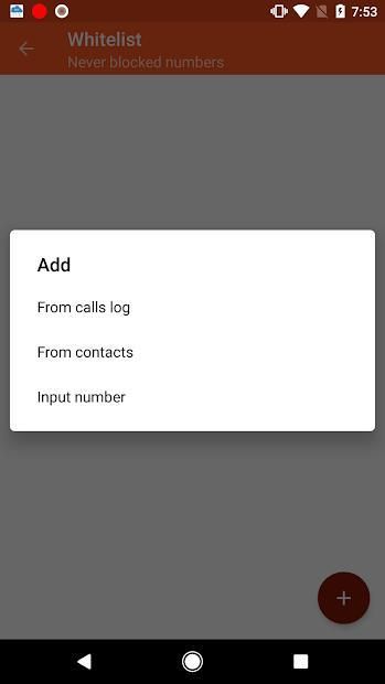 If you don't want to block calls from a certain number, adding it to the “Whitelist” is sufficient. Callers from this list will never be rejected by the blocker.