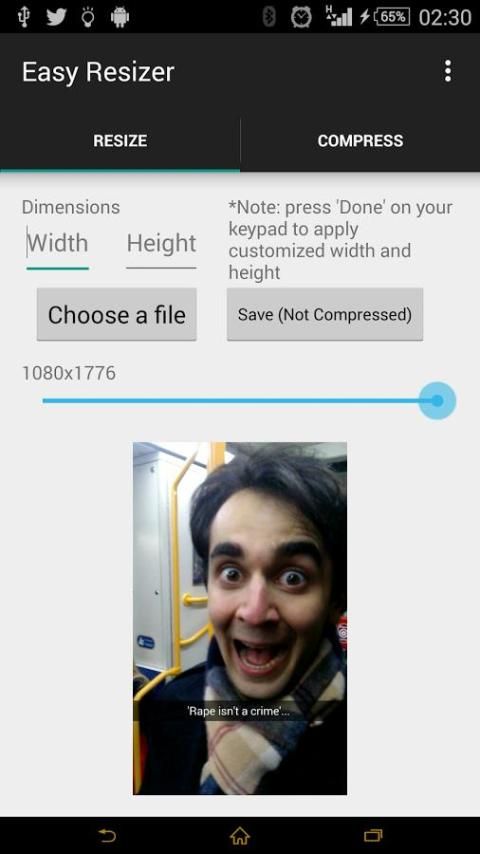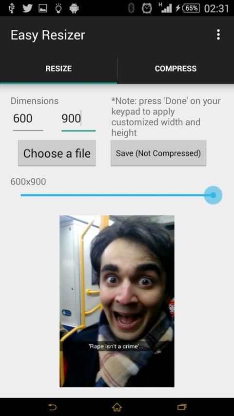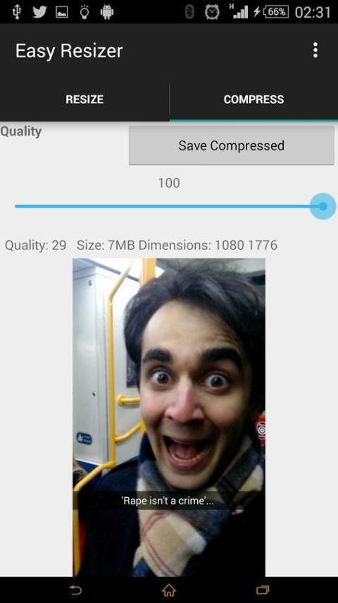 Android पर सबसे छवियों PNG प्रारूप में है और बहुत भारी हैं कि ध्यान दें। सरल संपीड़न के साथ वे 500 KB या कम करने के लिए 3MB से आकार दिया जा सकता है। (आकार छवि के आधार पर भिन्न)। इस एप्लिकेशन के द्वारा संकुचित छवियों जेपीईजी प्रारूप में बचाया जाएगा।