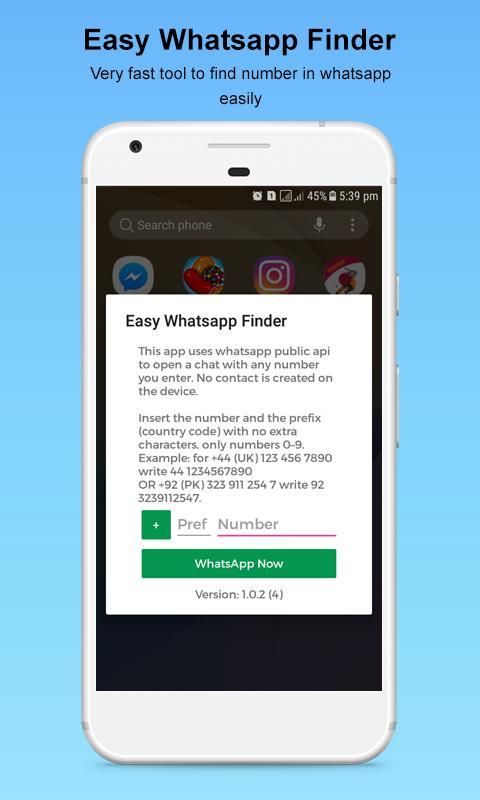 आसान WhatsApp खोजक का उपयोग करना वास्तव में तेजी से होता है। एप्लिकेशन गुणवत्ता और परिशुद्धता पर ध्यान देने के साथ बनाया गया था। डिजाइन भी सरल, अभी तक बहुत ही कुशल है, और हम हमेशा मदद से आप यादृच्छिक फोन संपर्क भी अगर आप ऐसा इच्छा उत्पन्न करते हैं।