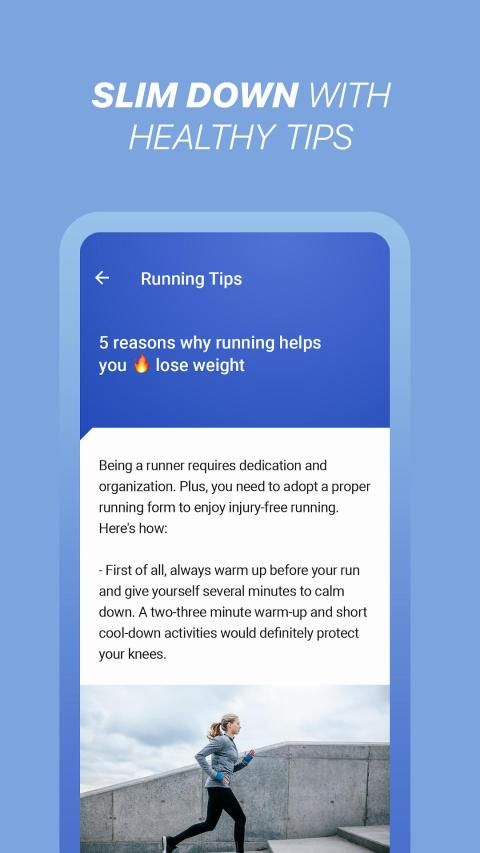 ऐप आपको वजन कम करने में मदद करता है और आपको चोटों और तनाव के बिना फिट रखता है ताकि आपको दौड़ने में आनंद मिल सके।