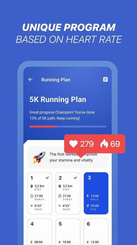 Plan your running and get notifications. Workout sessions last 25-30 minutes, including 5-minute warmup and cooldown.