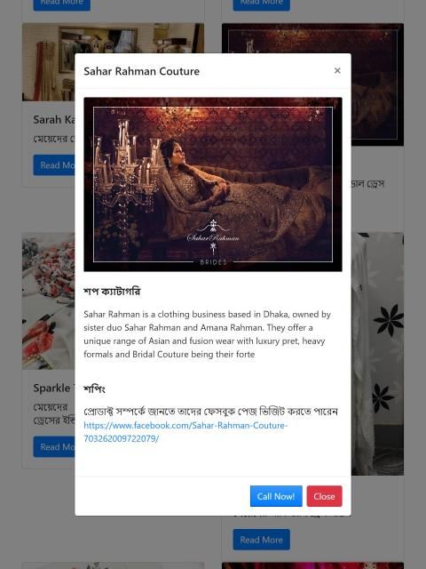 ईकॉमर्स आज लोकप्रिय हो रहा है बीडी में लोग भौतिक दुकानों या बाजारों के बजाय ऑनलाइन स्टोर की ओर झुकाव कर रहे हैं। ऑनलाइन शॉपिंग गाइड बीडी बांग्लादेश के लिए बनाया गया एक ई-कॉमर्स स्टोर परिचय ऐप है। यह ऑनलाइन शॉपिंग एप्लिकेशन बीडी और उनके फेसबुक पेज, फोन नंबर, वे क्या प्रदान करते हैं आदि में सभी अच्छी गुणवत्ता की ऑनलाइन दुकानों का परिचय देते हैं आशा है कि इससे दुकानदारों को अपना पैसा पाने में मदद मिलेगी :) आपको यहाँ क्या मिलेगा: