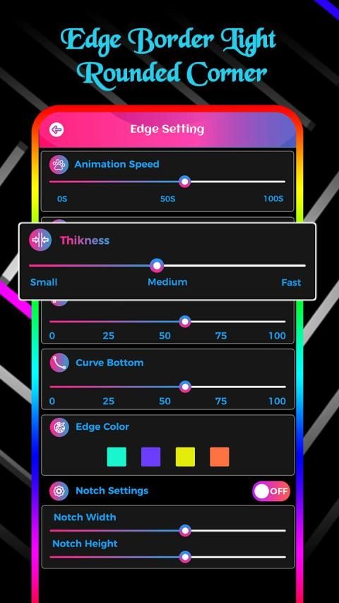 app allows you to set Edge effects like Animation Speed, Thickness, Curve Top, Curve bottom, Edge color and also best option to set Notch to make more adorable edge effects. An application which allows animated live wallpaper theme with that you can set Edge lighting live wallpaper in your device. the application does not consume more battery while you set in your mobile screen as live wallpaper.