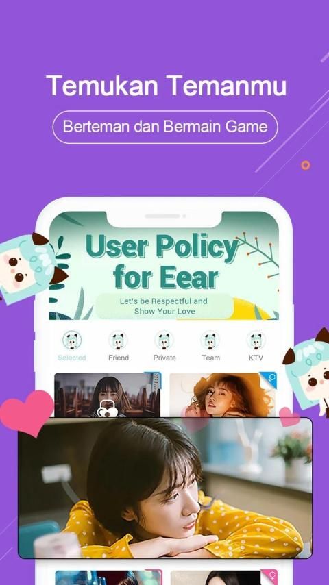 Many youth today is afraid to communicate with each other, are you one of them? Do you want to interact more with real people around you? Install Eear, a brand new social platform allowing you to know all types of talented friends. Relax and join a chat room! Express yourself and be a host! Sing, Chat, Play Games, whatever you want to do, find it here, at Eear.