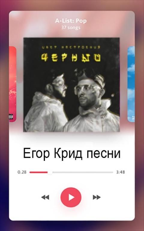[9:02 PM, 11/9/2019] : приложение "Егор Крид песни - Egor Kreed без интернета " содержит лучшие песни Egor Kreed :