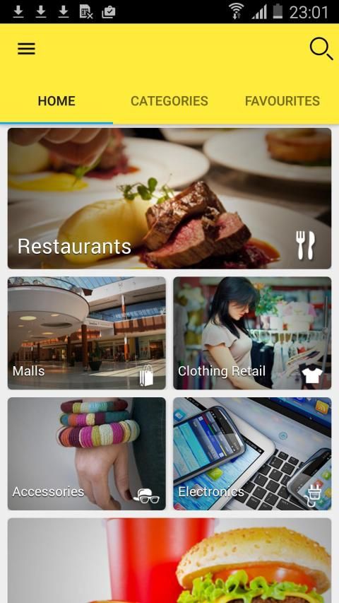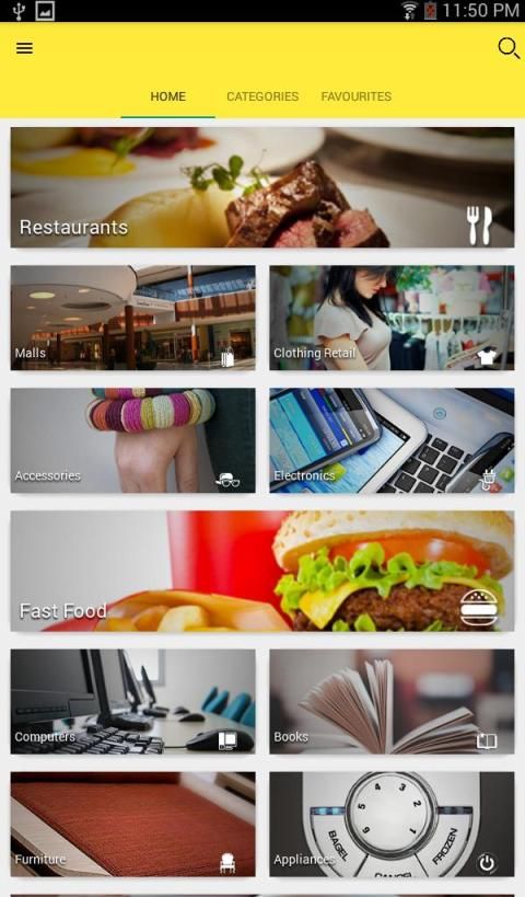 1. Discover venues for popular categories nearby your location with one tap on any icon on the home screen