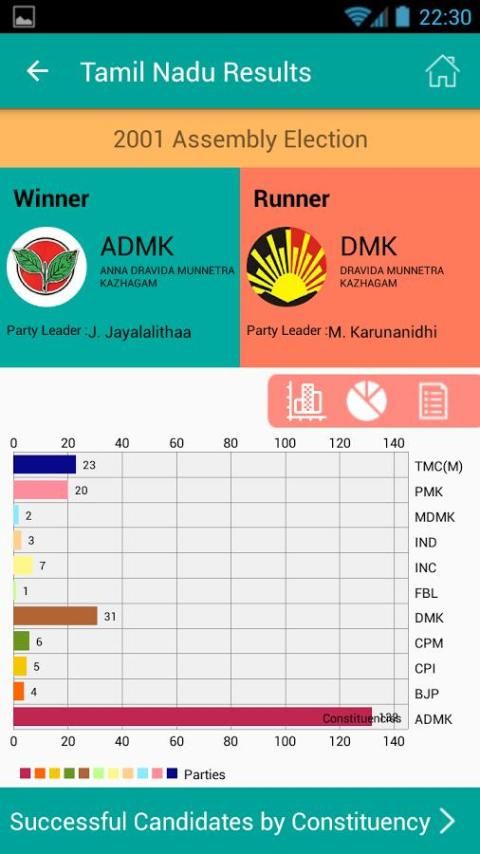 पार्टी के नेता निर्वाचन वोन / खोया नहीं है, सभी पार्टी जानकारी, विजेताओं और वोट का कोई साथ सभी निर्वाचन क्षेत्रों के उप विजेता की तरह की जानकारी के साथ चुनाव परिणामों के 50 से अधिक वर्षों के लिए विश्लेषणात्मक और ग्राफिकल दृश्य।