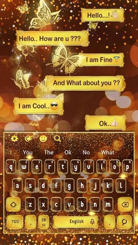 सुरुचिपूर्ण सोने की बोटलेटरी कीबोर्ड थीम आपको बटरफ्लाई और एलीगेंट शैली का एक बेहतर टाइपिंग अनुभव प्रदान करती है!