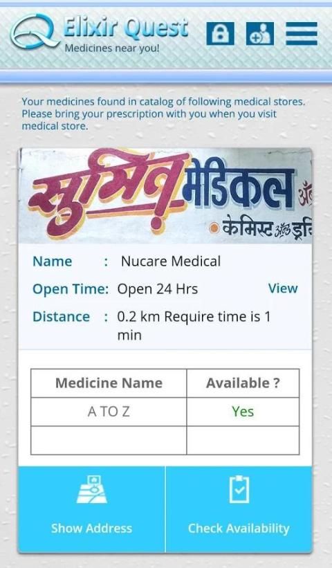 दवाओं की आवश्यकता है? खोजें दवा ... उपयोग अमृत क्वेस्ट, यह आप के पास मेडिकल स्टोर को दर्शाता है।