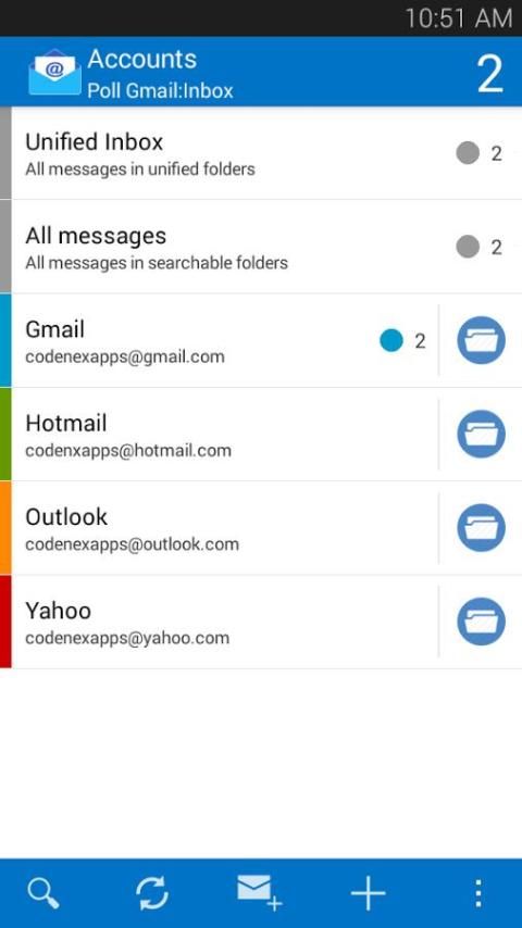 अनुकूल इंटरफ़ेस नेविगेट -साथ अपने ईमेल खातों इतना आसान नहीं था कभी नहीं के बीच। इस एप्लिकेशन के पास कई विकल्प हैं, तो आप अपने मेलबॉक्स, नाम, तारीख, अनुलग्नकों के द्वारा खोज ईमेल का प्रबंधन कर सकते हैं। फ़ोल्डर (आप नए फ़ोल्डर बनाने या डिफ़ॉल्ट फ़ोल्डर का उपयोग कर सकते हैं) द्वारा अपने ईमेल का आयोजन।
