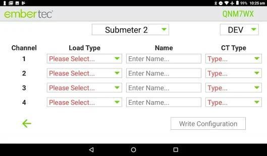 From the app, an approved installer can register and configure multiple (many) Embertec Emebermeters quickly and effectively.