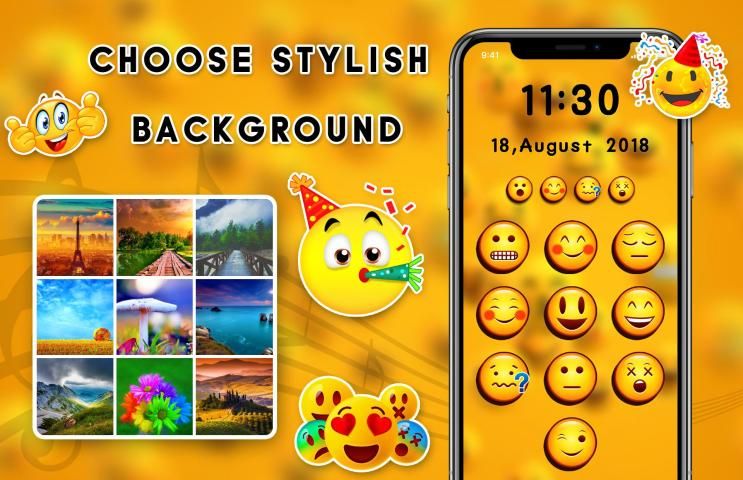 Change your default lock screen with emoji lock screen and increase your privacy security with smiley.