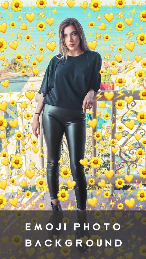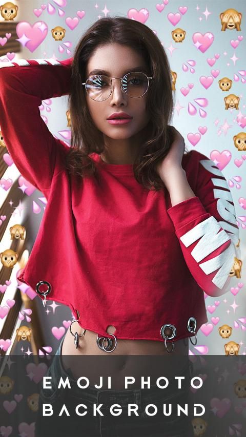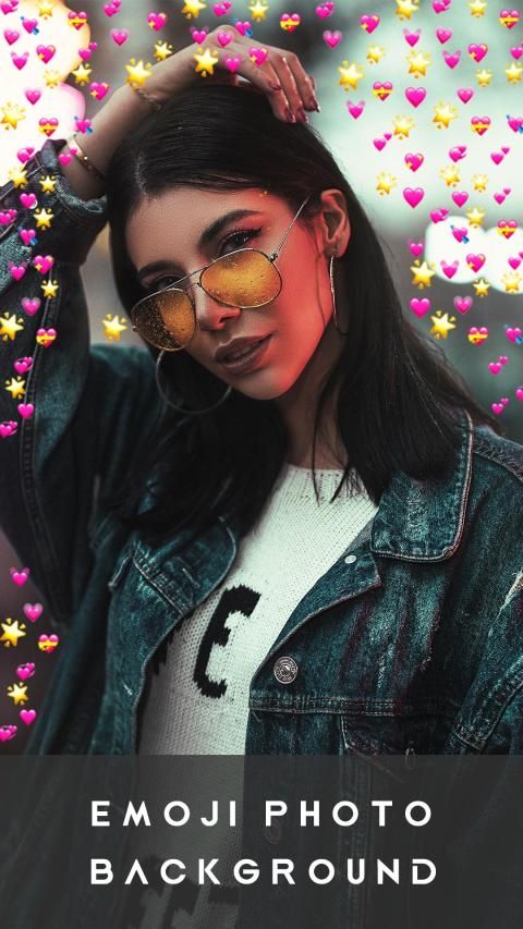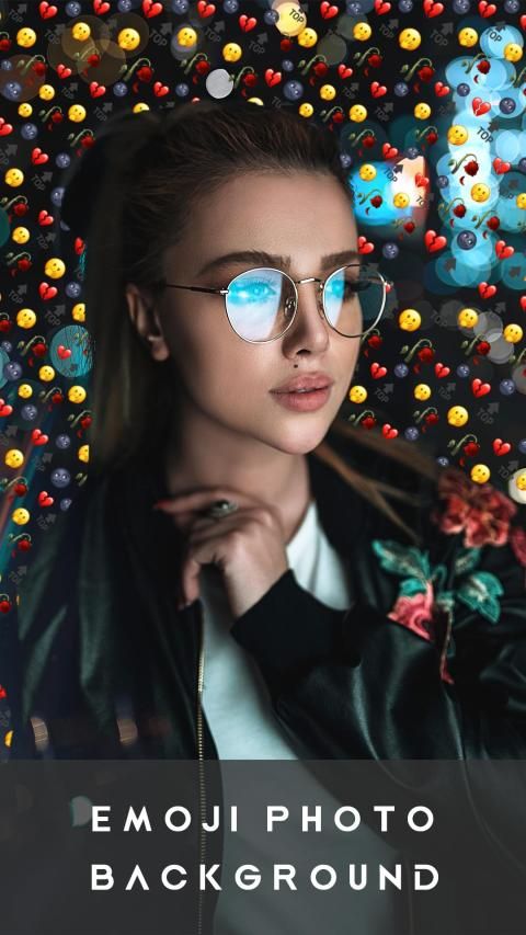 Emoji background stickers are simple to add: Take a pic or choose one from gallery, then select your favorite emoji background, place them in your photo, erase or transparent emoji background until you like, save your photo and share it on social network.
