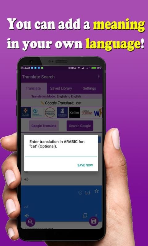 ऑनलाइन कई अंग्रेजी शब्दकोशों में शब्द और वाक्यांश खोजें, और महत्वपूर्ण शब्दों, वाक्यांश क्रियाओं, मुहावरों, अभिव्यक्तियों और किसी भी अन्य शब्द या वाक्यांश को प्रासंगिक अनुभाग में सहेजें। इसके अलावा, आप अपनी "मूल" भाषा में अर्थ को तब भी सहेज सकते हैं, जब भी आप उन्हें संशोधित करना चाहते हैं।