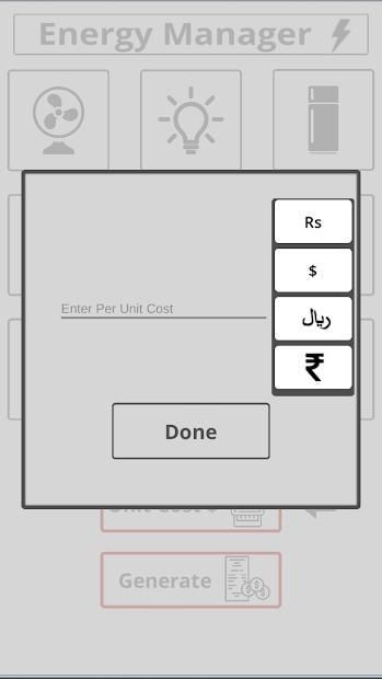 This app can let you know that which one of your house hold items consumes more money. We have added nine electricity items that are most commonly used in the houses. User can easily enter the number of items and the "Watts" consume by per device and also have to enter the "Cost per unit" without that the final bill sheet is not gonna displayed.