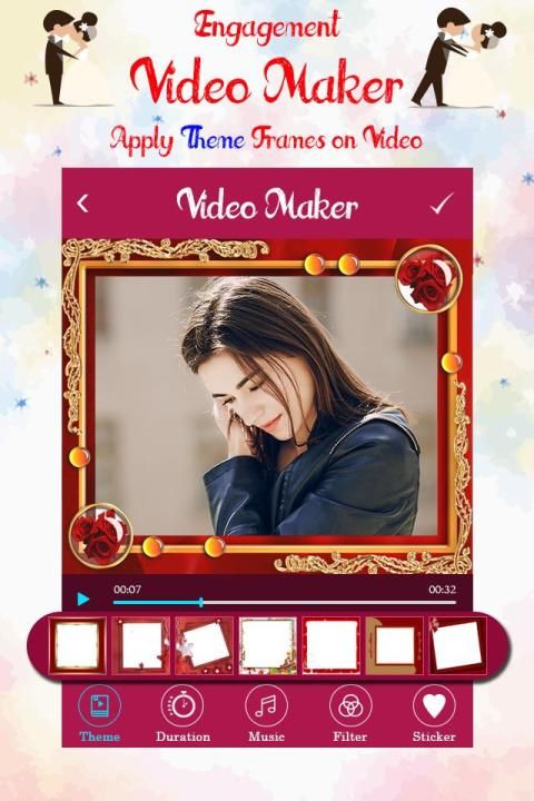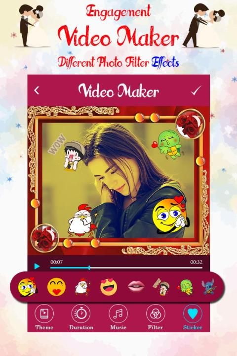 सगाई वीडियो निर्माता के लिए हमारे आवेदन को डाउनलोड करें सुंदर वीडियो बनाने के लिए और दोस्तों और परिवार के साथ आंख को पकड़ने वाला वीडियो साझा करें।