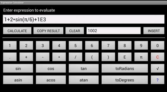 - Expression calculator to evaluate simple mathematical and trigonometrical expressions.