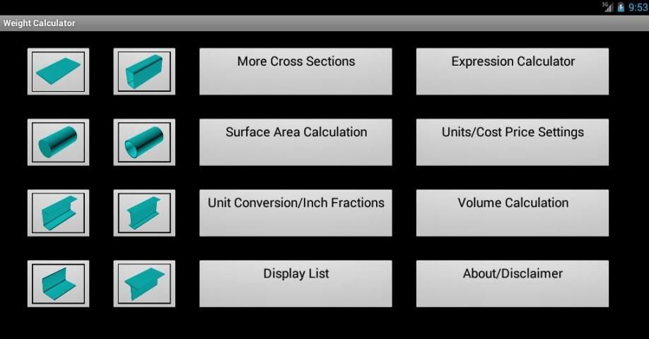 "इंजीनियरिंग वेट कैलक्यूलेटर" एक साधारण अनुप्रयोग है जो सैद्धांतिक गणना के मानक को सरल बनाने और मानक इंजीनियरिंग / संरचनात्मक घटकों की लागत को सरल बनाने के लिए विकसित किया गया है जैसे कि: