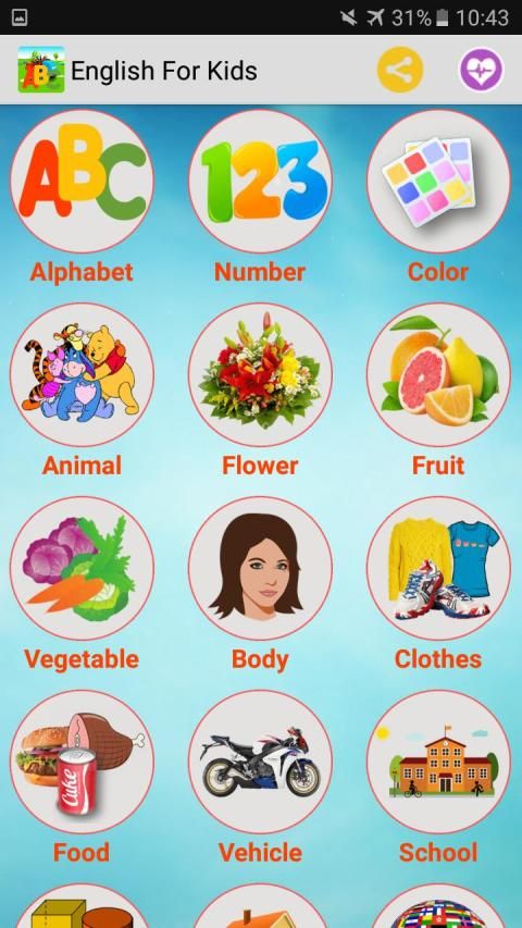 This free app is very useful for your kids who need to improve English vocabulary, listening and reading abilities. You can let your kids learn English with hundreds of vocabularies with images and pronunciation. It's very easy to use with simple, intuitive and powerful interface.