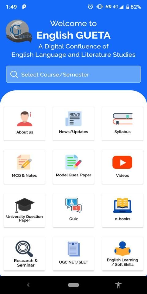 The new English GUETA app has been created to strengthen the bridge between students and teachers of Gujarat University. This new app contains Question Bank which includes MCQs of General English, CC, English (Core/Elective), Notes (General English, CC), Acquaintances (English – Core/Elective) and more. This app also contains the updated syllabus, Model Question Papers, Question Papers of Previous Uni. Exams, links to reference/recommended books, etc. GUETA uploads the answer keys to University Question Papers after the Examinations. Quizzes have also been introduced for all the papers of English (General & Core/Elective). It also provides useful links to the Syllabus related Videos and SANDHAN (BISAG). Links to Free e-resources for learning English have been provided. The website also uploads the details regarding Seminars/Conferences/Workshops. The research scholars can watch out important guidelines for their research.