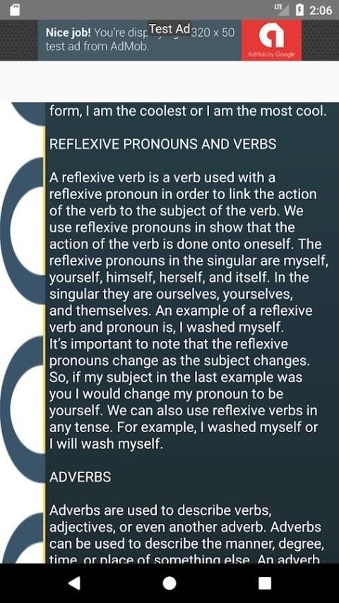 इस एप्लिकेशन के माध्यम से सुन और अंग्रेजी व्याकरण सीखने के बाद आप किसी भी अंग्रेजी व्याकरण परीक्षण आसानी से लेने के लिए सक्षम हो जाएगा और आप व्याकरण के नियमों को लागू कर सकते हैं और अंग्रेजी व्याकरण में स्वामी बन सकता है।