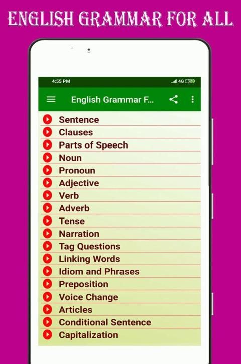 English Grammar for all is the English grammar app where all grammatical lesson are included wisely. We focused the basic and necessary topic of English Grammar.