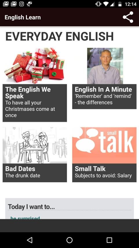 "English Learn App" is a free application for learning to speak English. "English Learn App" contains lessons that give special attention to English pronunciation and everyday language.