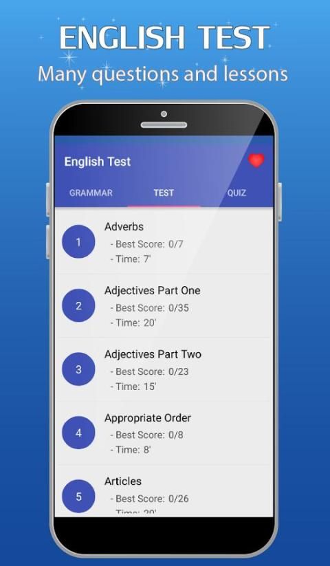 अंग्रेजी टेस्ट कई व्याकरण सबक समझा विस्तार और कई व्याकरण विषय, प्रश्न परीक्षण, अंग्रेज़ी प्रश्नोत्तरी परीक्षण में शामिल है।