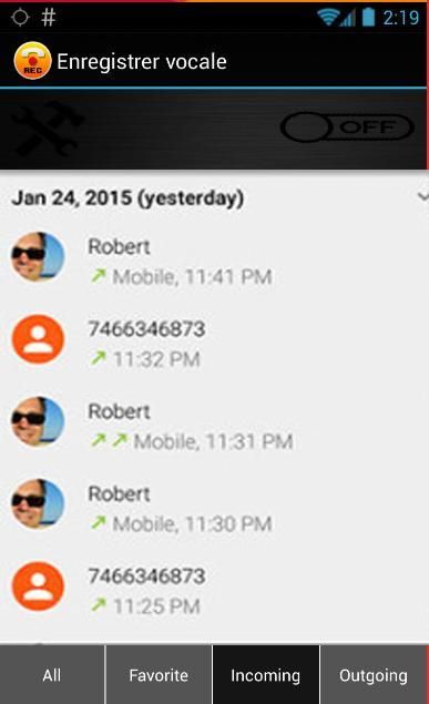 - आने वाली और बाहर जाने वाले के लिए व्यक्तिगत सेटिंग्स "रिकॉर्डिंग संपर्क केवल" "रिकॉर्डिंग संपर्क ही नहीं है," "सभी सहेजें", "लिखना मत करो",