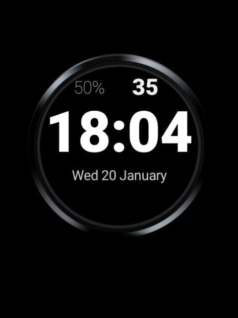 Android Wear के लिए हर रोज बड़ी अंक और दूसरे सूचक के साथ डिजिटल घड़ी चेहरा है।