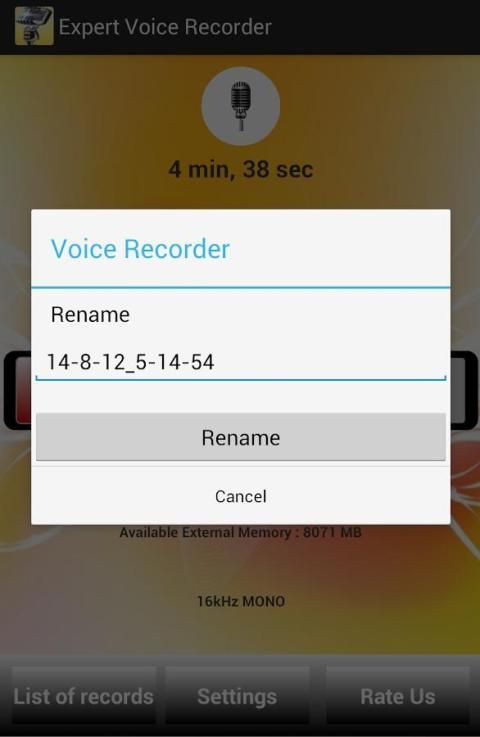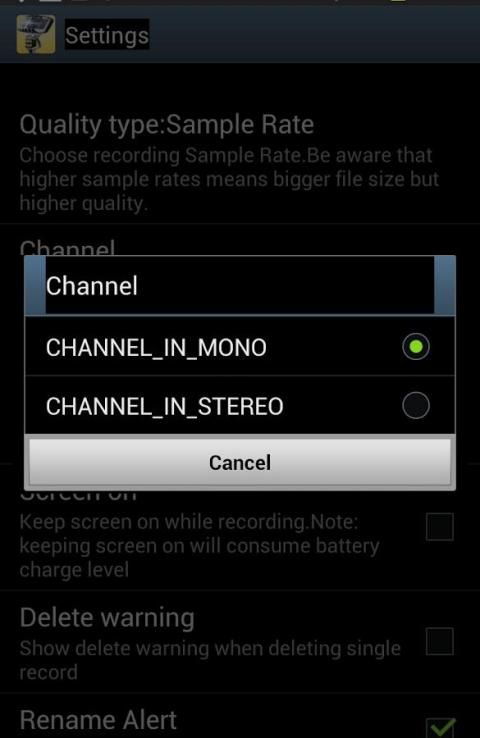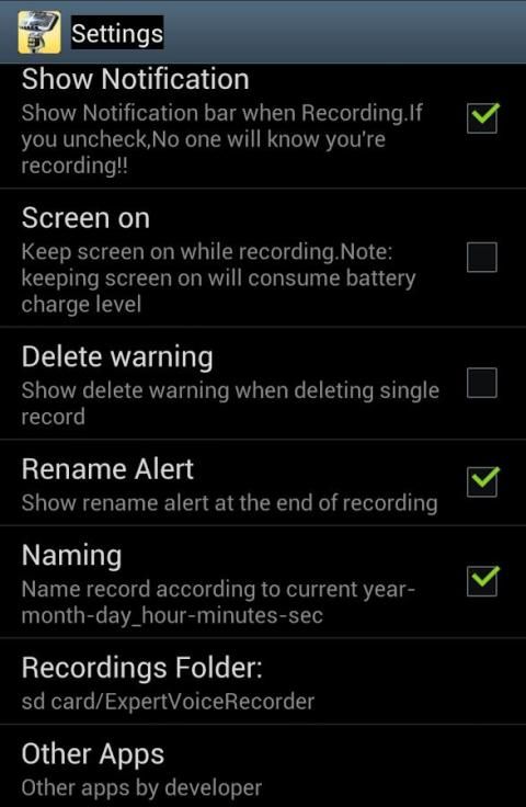 विशेषज्ञ वॉयस रिकॉर्डर उच्च गुणवत्ता (wav) लगता रिकॉर्ड है, और आप अपने रिकॉर्डिंग की गुणवत्ता और फ़ाइल आकार को नियंत्रित करने के लिए नमूना दरों का विकल्प देते हैं।