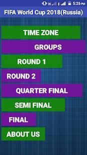 आप फीफा विश्व कप 2018 (रूस) के सभी मैच समय सारणी पता कर सकते हैं। भी तारीख, स्थानीय समय, स्टेडियम नाम पता कर सकते हैं।